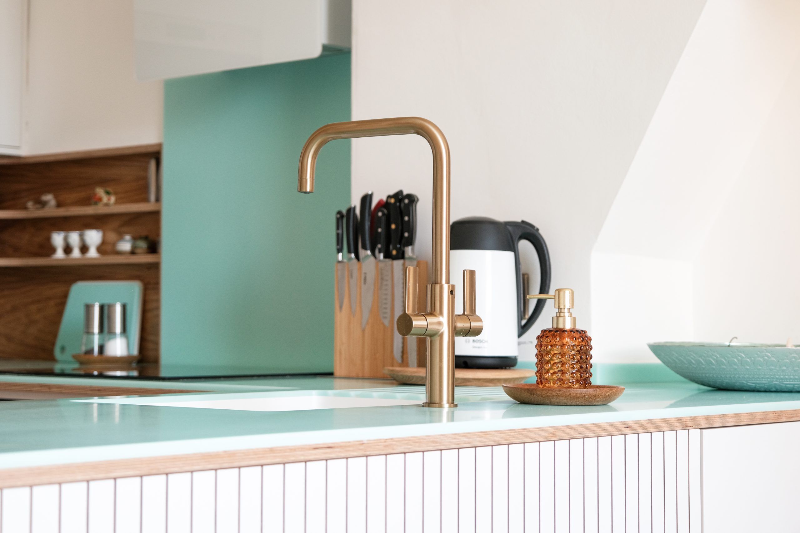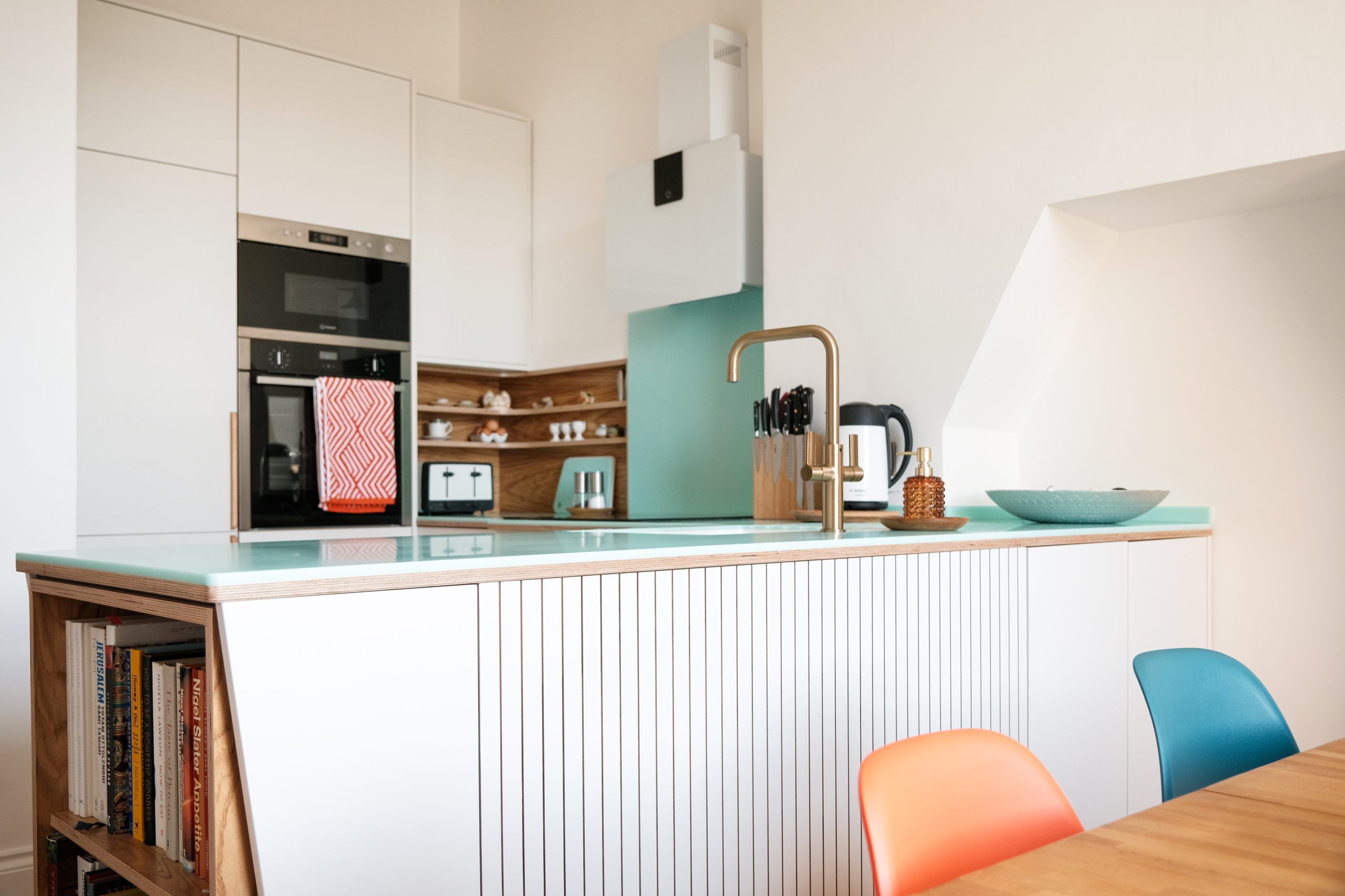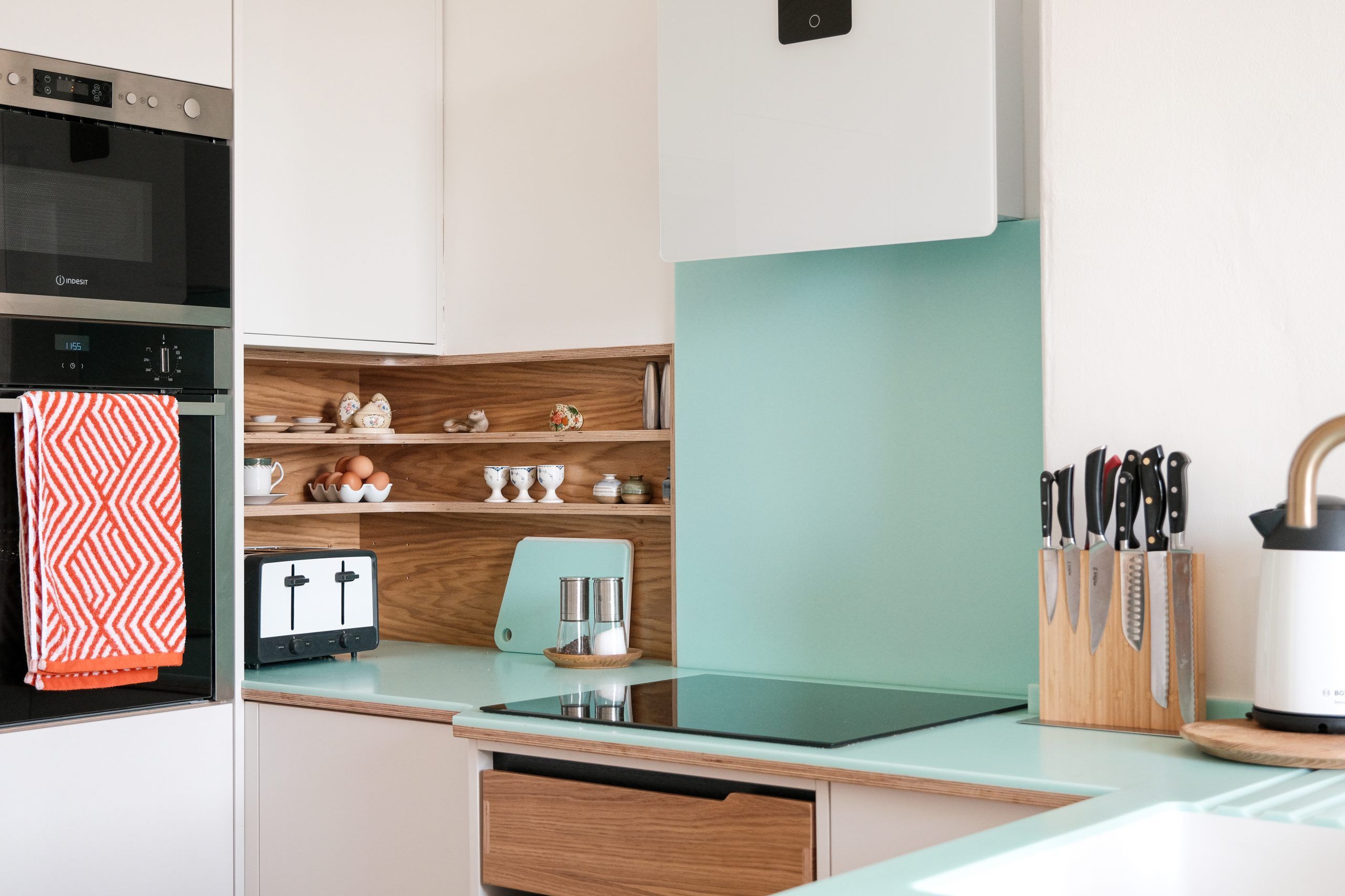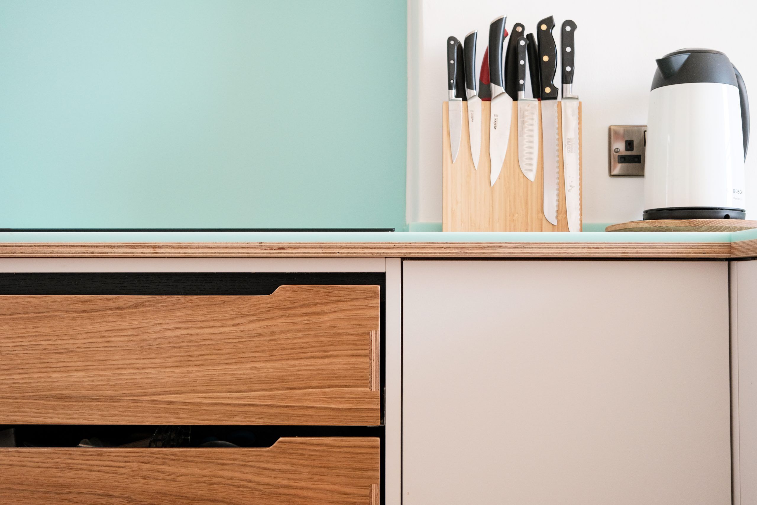 A playful and vibrant birch plywood kitchen with tailored fronts for Howden’s kitchen