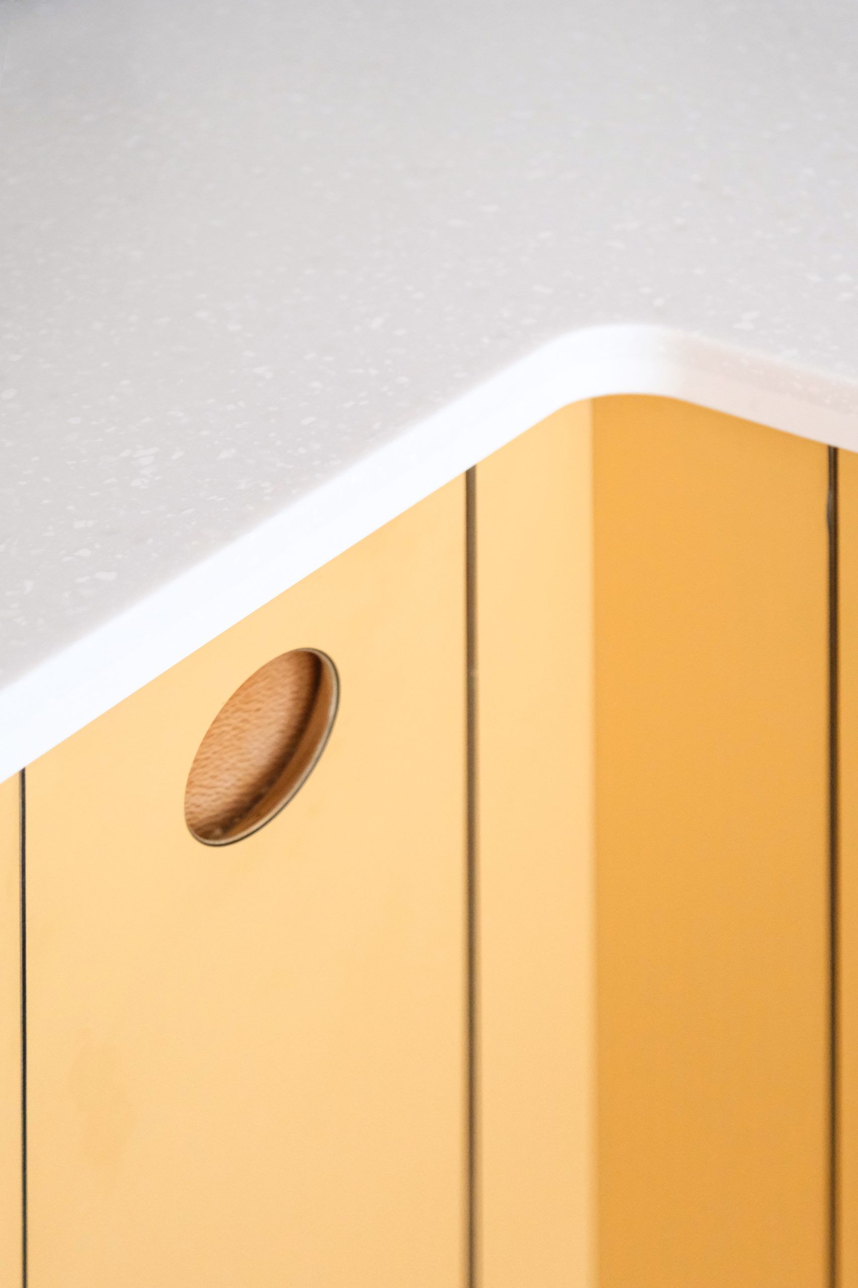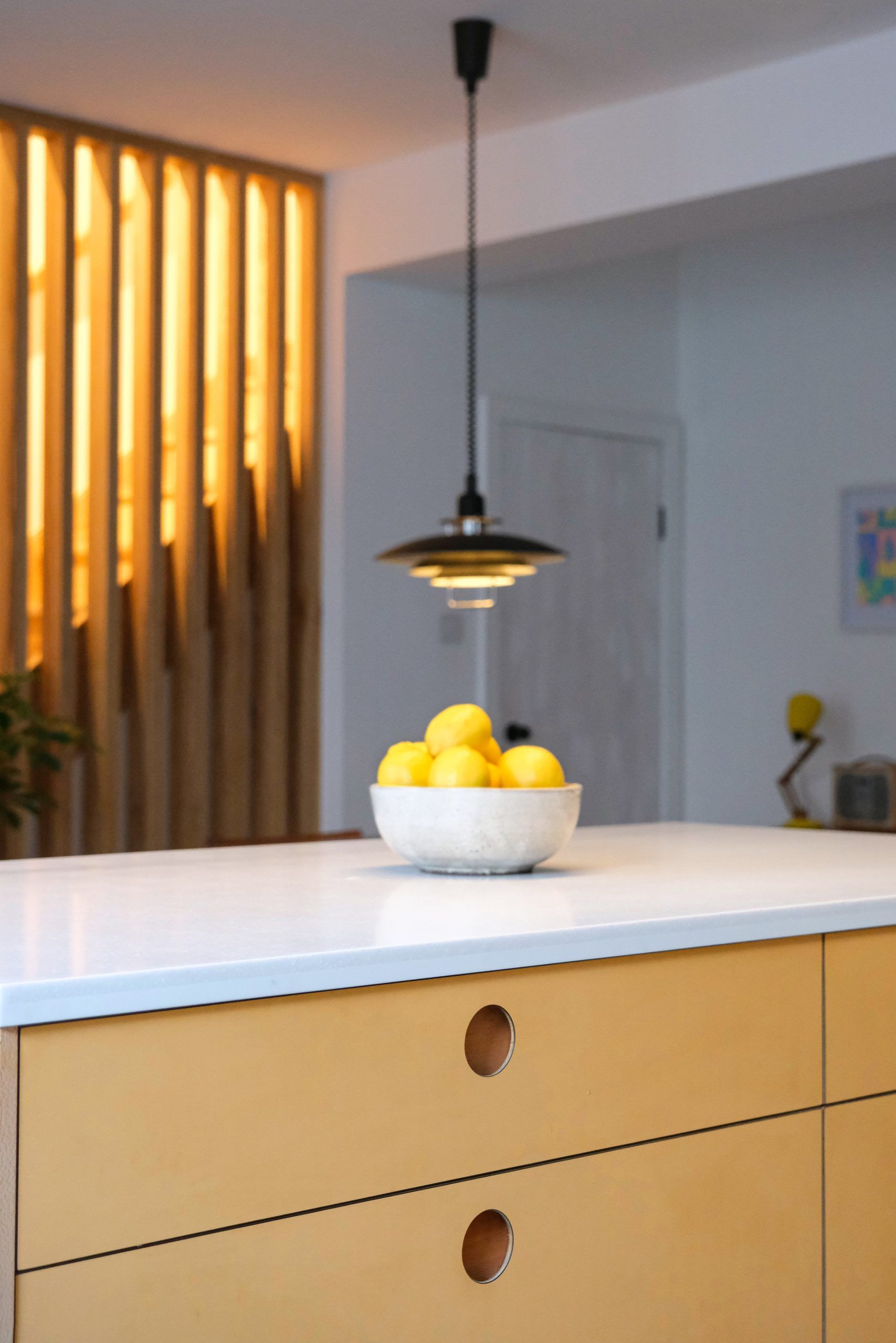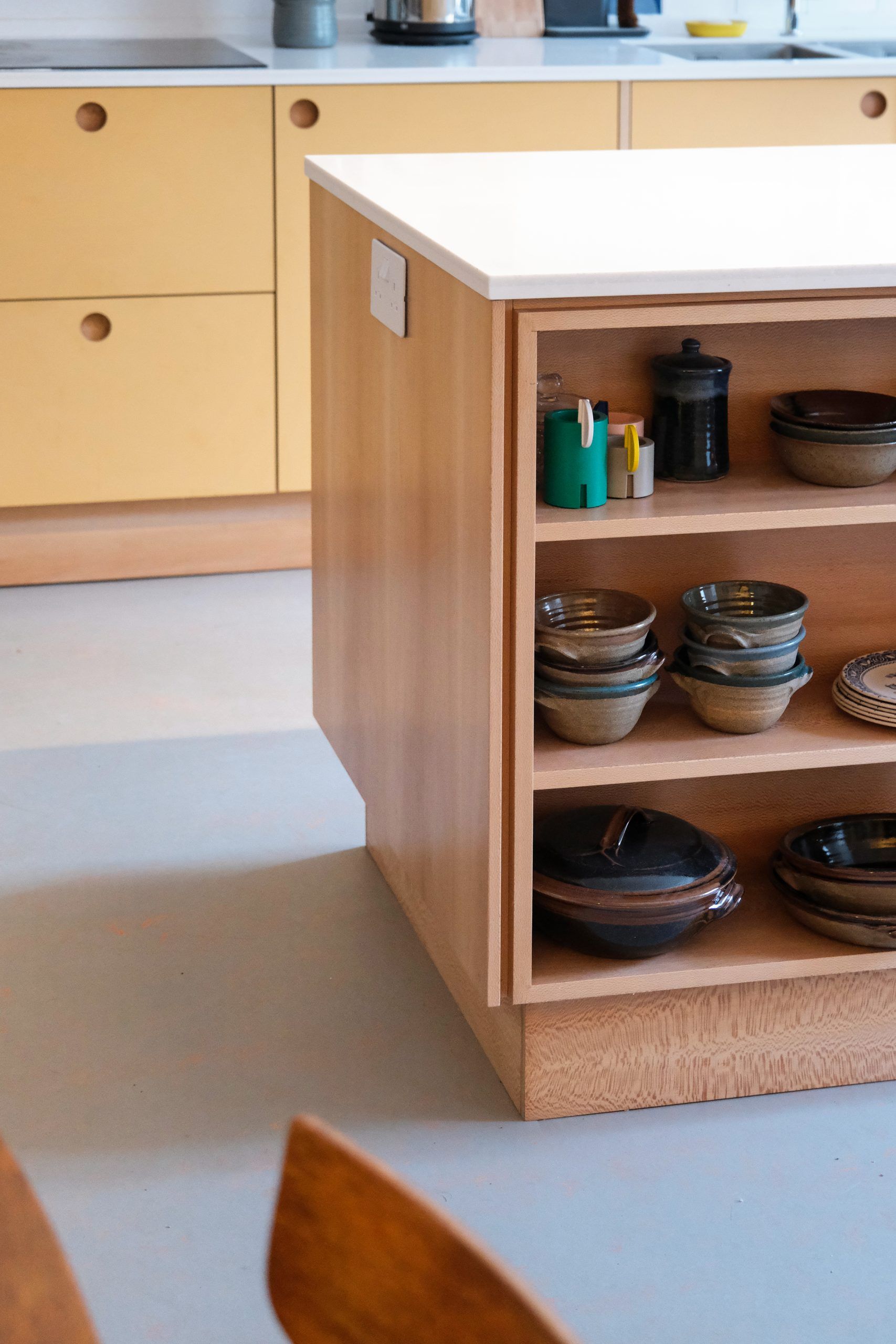 From the outset, Emily and Matt knew they wanted to feature London plane wood and yellow laminate as the main materials. We immediately loved this combination, as it perfectly captured the mid-century ochre vibe they were aiming for.