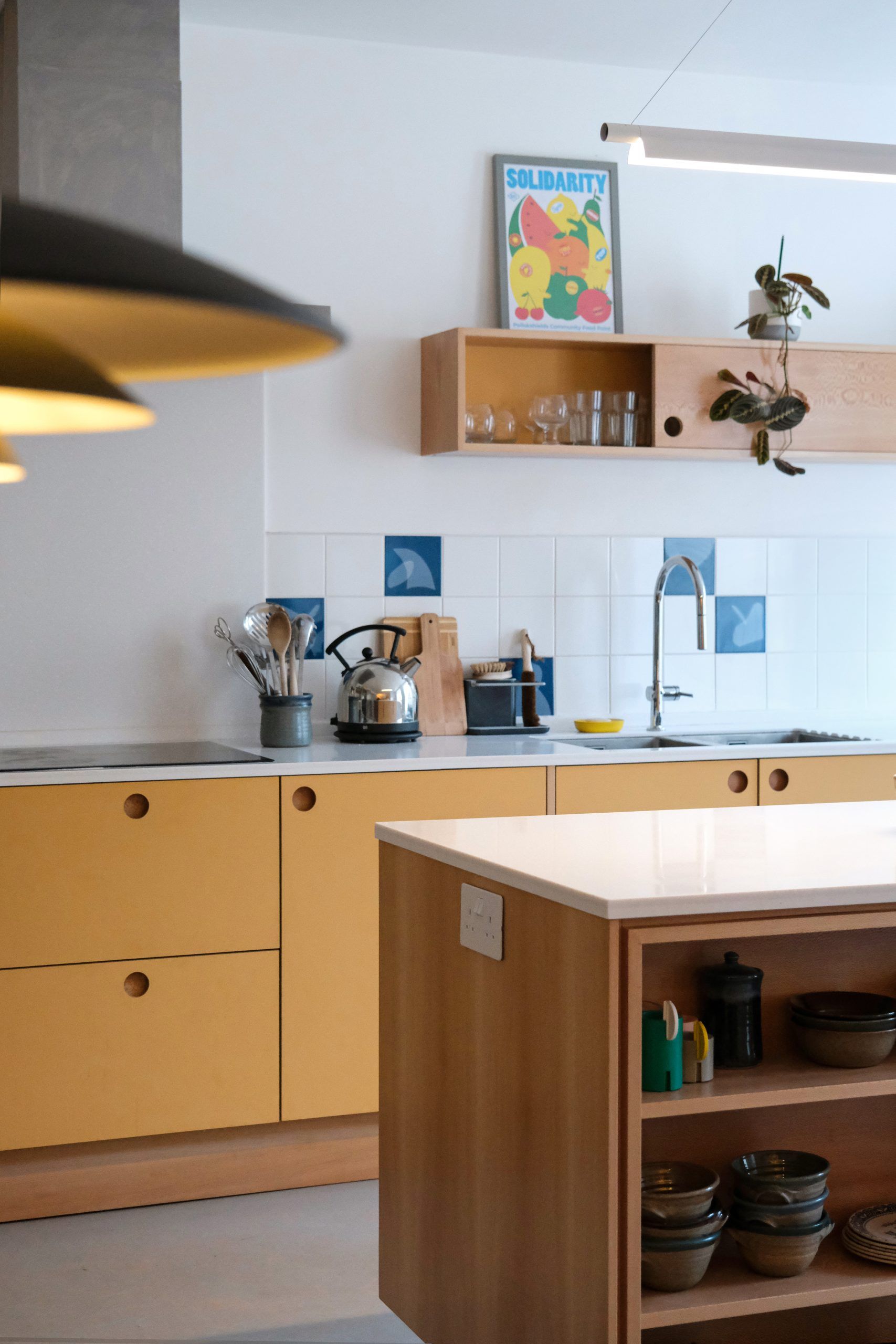 A playful and vibrant birch plywood kitchen with tailored fronts for Howden’s kitchen