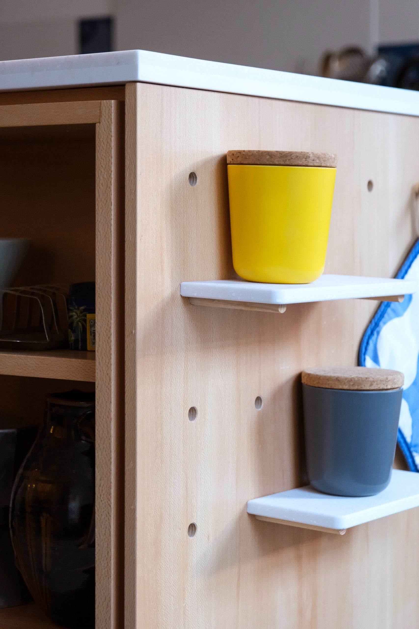 There are so many standout elements in this kitchen, but a few highlights are the spacious central island—perfect for the kids to run around and for displaying Emily’s and Matt’s eclectic collection of kitchen utensils—and the stunning London plane wall units. We can’t overlook Matt’s fantastic choice of tiles, which add the perfect finishing touch to the space
