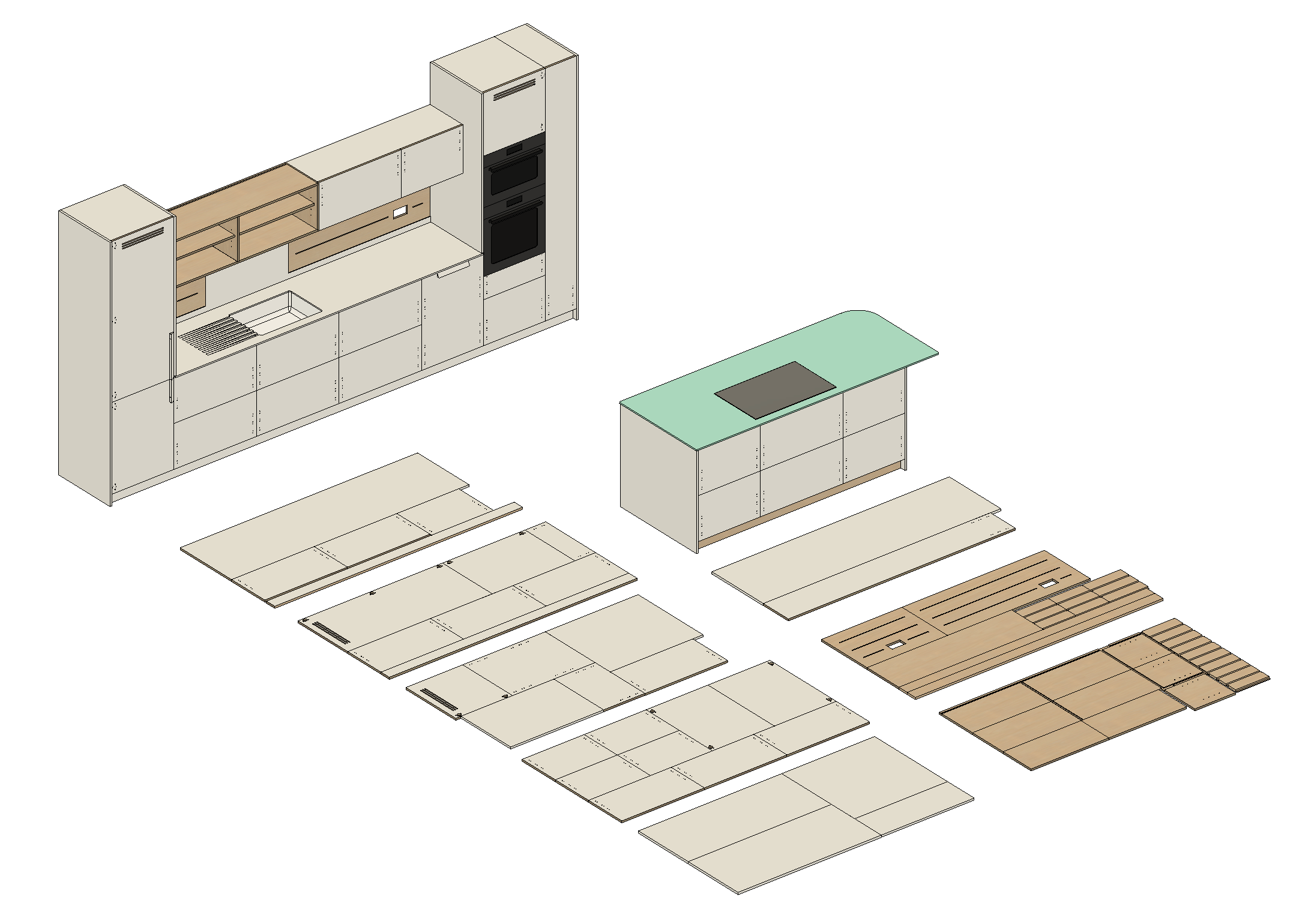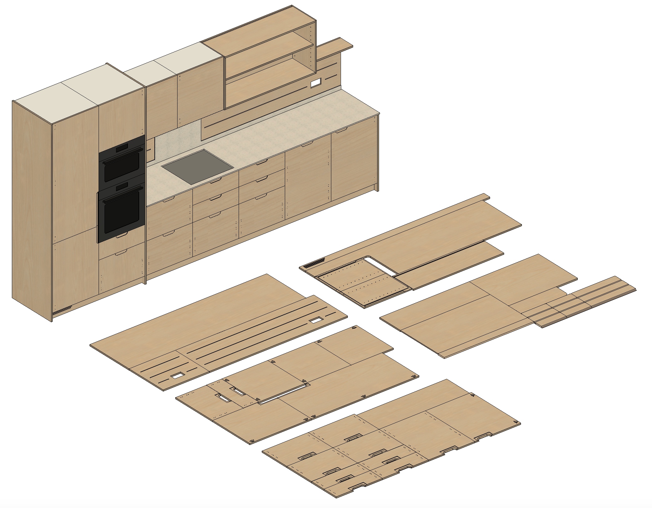 To calculate an accurate cost, after you have submitted your kitchen plan, we will calculate the number of 8ftx4ft sheets of materials that you need. We aim to minimise waste by informing you if there are any other useful items that can be added to your order, such as open shelves, small pegboards, or other handy accessories that can be made from the remaining material sheet.